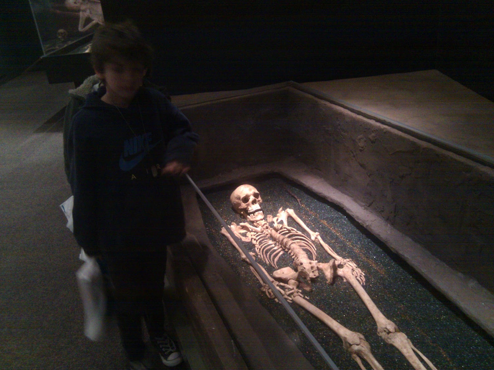 - We cruised back by Natural History for some food (ended up having the identical meal we had at lunch the day before since the large cafe was closed), a little more shopping (some gifts) and I convinced them to walk through the section we'd missed the day before. It was the section on bones and forensic anthropology - after a day of cruising exhibits, they were still exited by what they saw. The science aspect of the forensic anthropology exhibit was great and they were still reading exhibits late in the day. Temperance Brennan would be proud :)